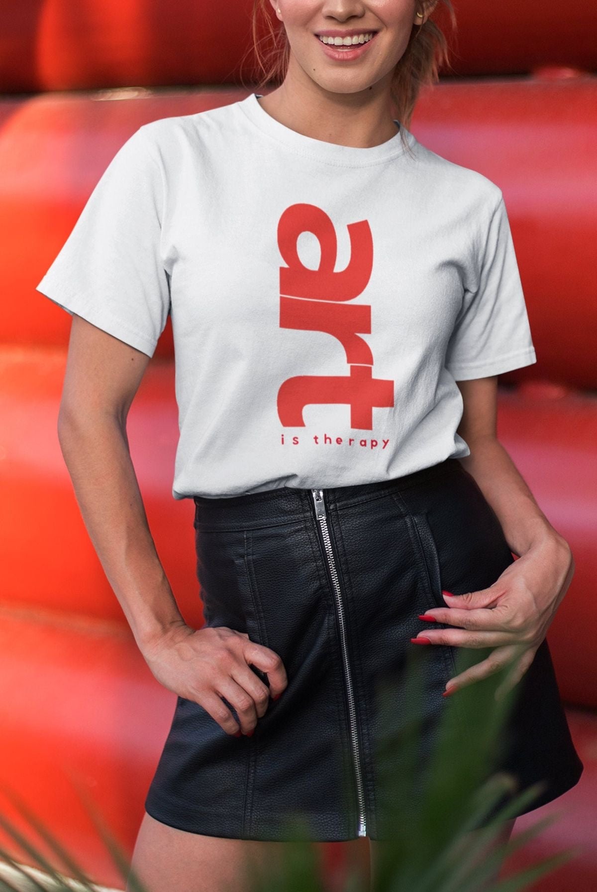 Wear your healing with pride in this “Art is Therapy” white graphic t-shirt. Designed for artists, creatives, and expressive souls, this tee delivers a powerful message with bold typography. The vertical red “art” design makes a strong visual impact, while the soft cotton fabric ensures all-day comfort.