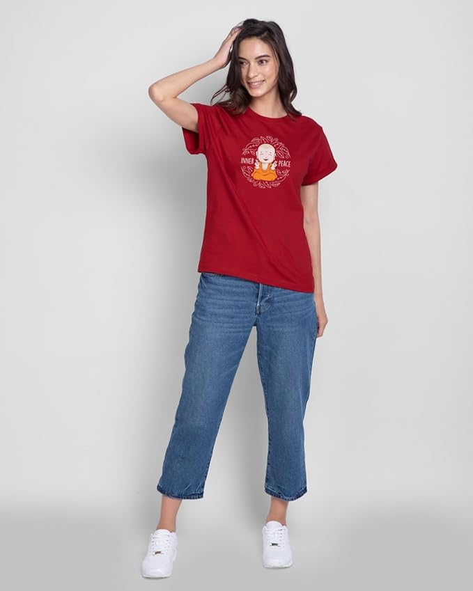 Channel calm vibes with this Inner Peace red graphic T-shirt featuring an adorable meditating monk design. The peaceful artwork and uplifting message make it a perfect wardrobe addition for those who love positivity and mindfulness. Made from soft, high-quality cotton, this tee combines comfort with spiritual flair – ideal for casual wear, yoga sessions, or simply spreading good vibes.