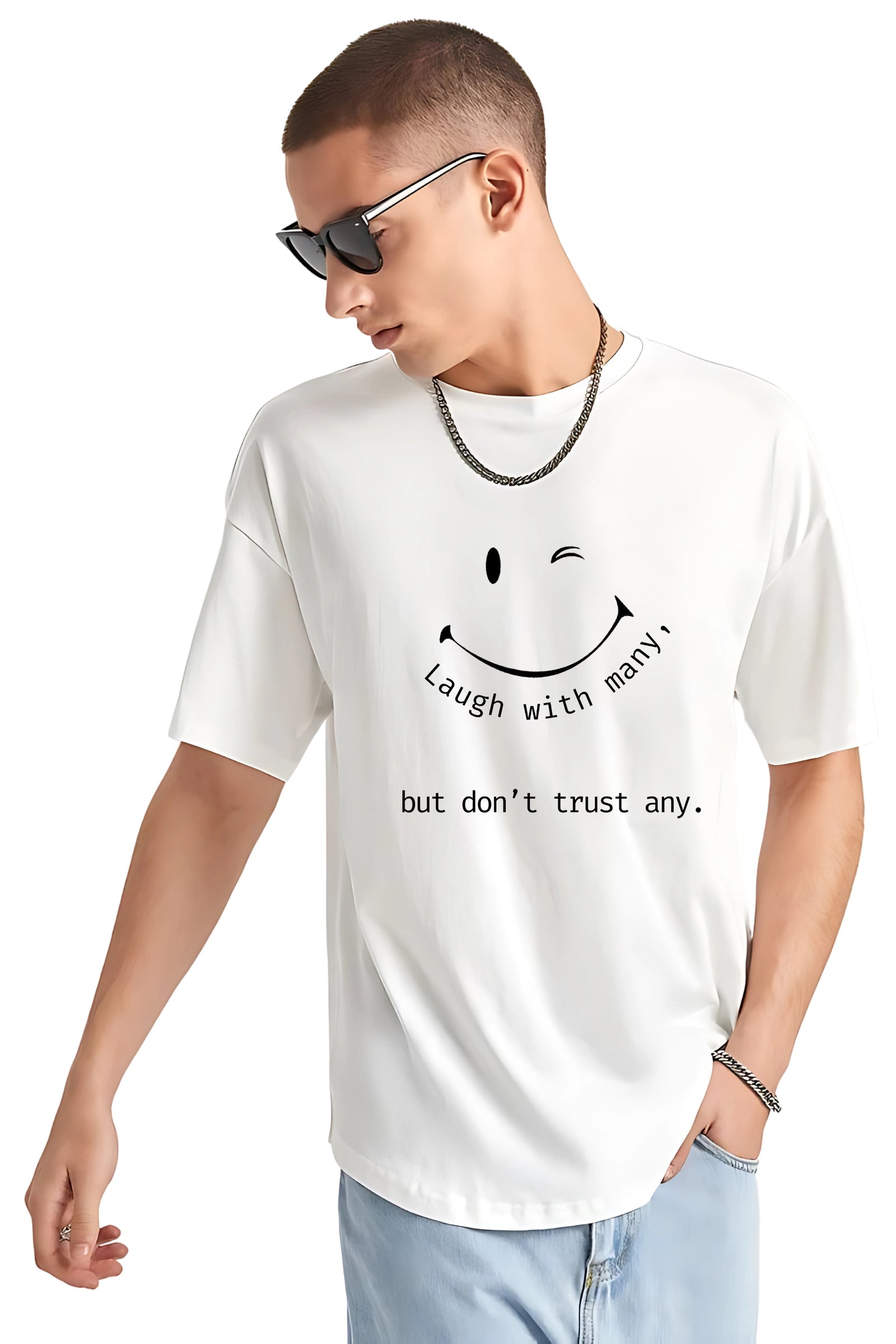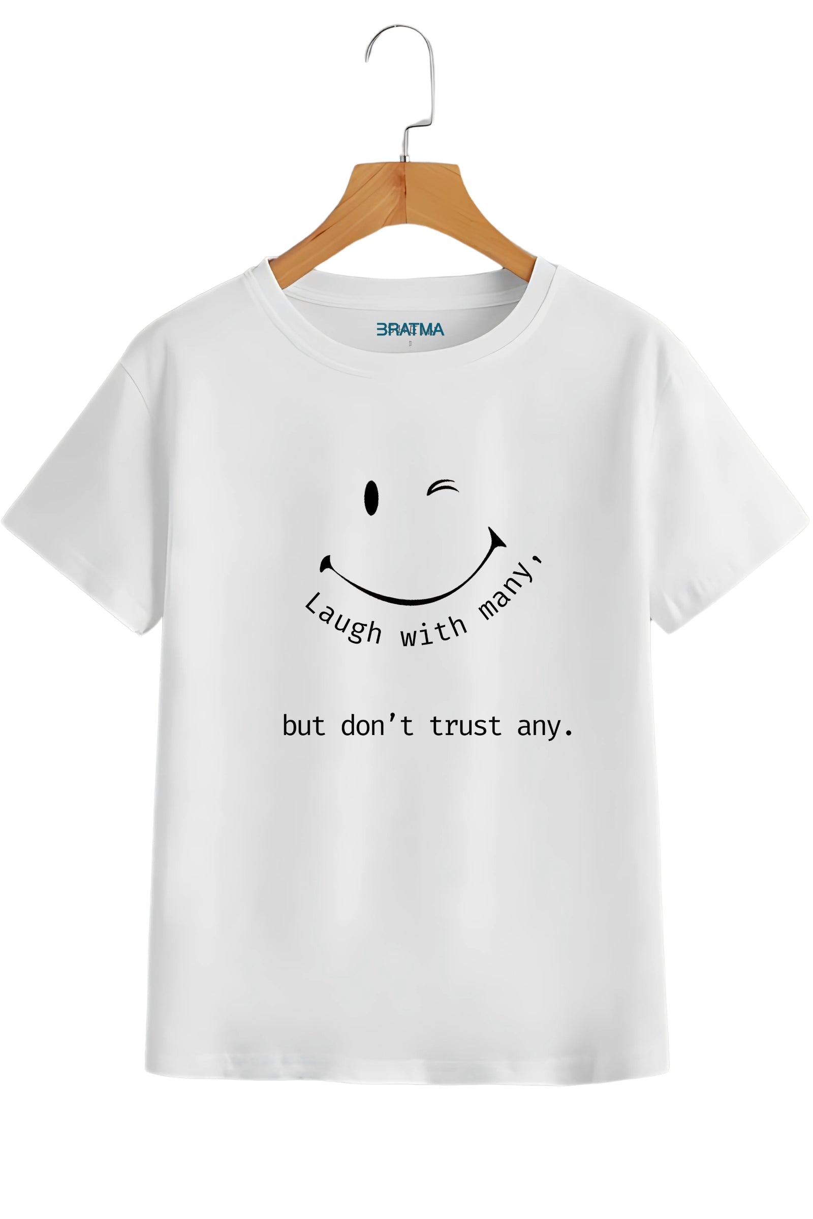 Let your T-shirt do the talking with this playful yet edgy statement tee! Featuring a winking smiley and the bold quote: “Laugh with many, but don’t trust any”, this design blends humor and realism in a street-smart style. Ideal for those who love expressive fashion with a touch of sass. Soft, lightweight, and easy to pair with any casual look—this tee is a conversation starter wherever you go.